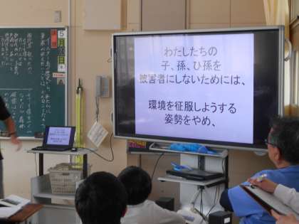 5時間目6年生は国語科の研究授業でした。「イースター島にはなぜ森林がないのか」の学習に取り組んでいました。子どもたちはイースター島の歴史から、未来に向けて思いをはせることの大切さに気付き、次世代の幸せを願う気持ちをもつことができました。