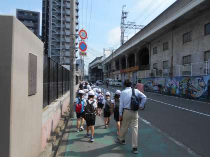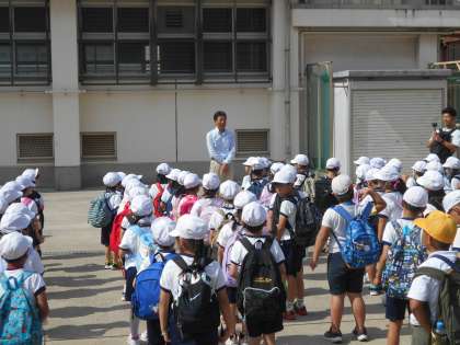校長先生のお話をしっかり聞いて、1・2年生の子どもたちは元気に出発しました。