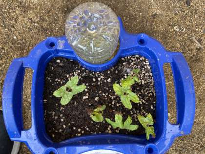 5月22日に植えました。5月24日の帰るときにはまだ出ていなかったのですが、今朝、植木鉢を見たらもうこんなに芽が出ていました。