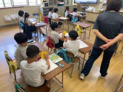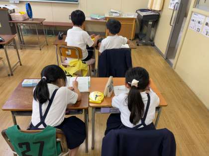その後、隣の子と自分の意見を伝えあいながら答えを出していました。