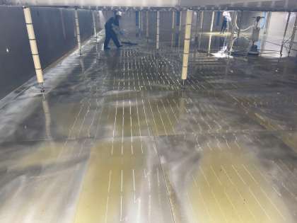 業者の方がプールの底にある点検口から下に入り、一番下の床をきれいに掃除をしてくださいました。