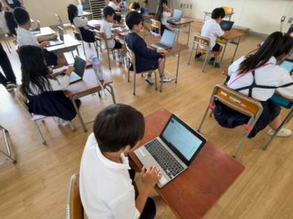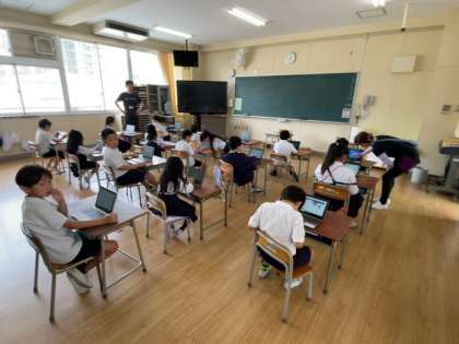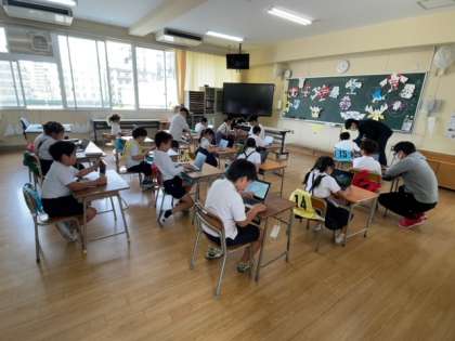 子どもたちは学習者用端末にログインして、各自でデジタルドリルに取り組んでいました。