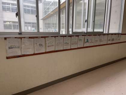 スケッチはこのように教室の前に掲示しています。学習参観などで学校にお越しの際はぜひご覧になってください。