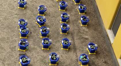 子どもたちは自分の植えたあさがおをじっくりと見ながら、色鉛筆などを使ってスケッチしています。上手に特徴をとらえています。