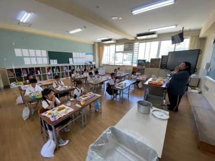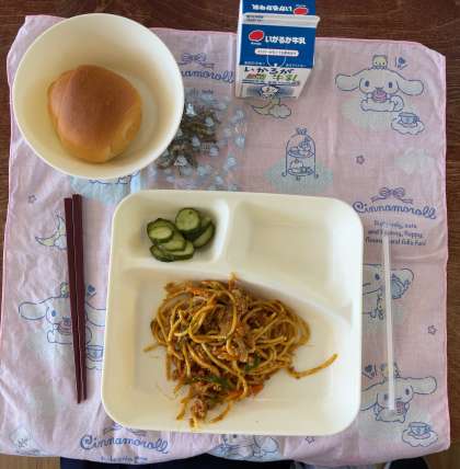 1年生の子どもたちはカレースパゲッティをたくさんおかわりしていました。また、どのメニューもおいしそうにたくさん食べていました。