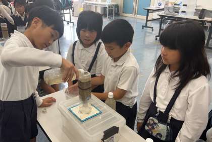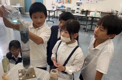 水のろ過の様子を観察しています。