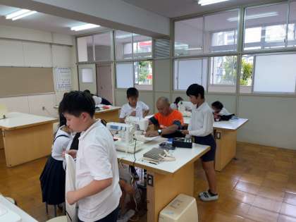 5時間目は家庭科の授業でエプロンをミシン掛けしました。