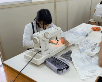 初めは練習用の布を使って恐る恐る縫っていましたが、少し練習すると上手に縫うことができるようになりました。