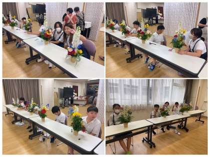 1時間ほどかけて、一人ひとりがそれぞれの生け花を完成させることができました。