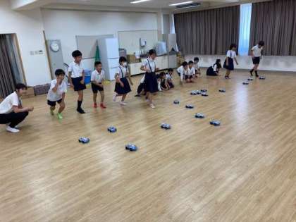電気の単元で直列・並列の学習をしました。各自が組み立てた電気自動車を使って、直列と並列のどちらが速く走るのかを実験しました。