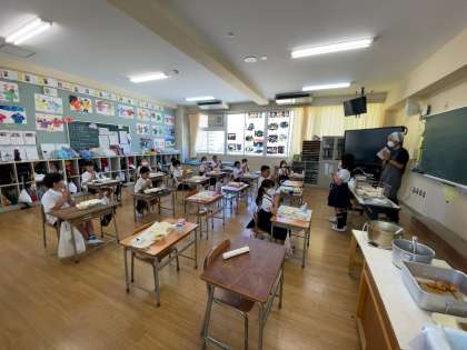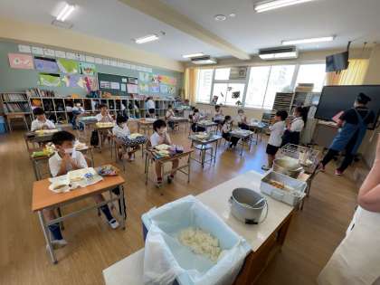 2年生の子どもたちは、どのメニューもおいしそうに食べていました。オクラは生活科で育てているので、子どもたちもなじみ深くなっているようです。