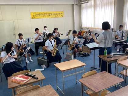 8月2日、吹奏楽部の活動の様子です。大阪府吹奏楽コンクールが先日終わったのもつかの間、今度は8月17日に行われるブロックコンテストをめざしての練習が始まっています。