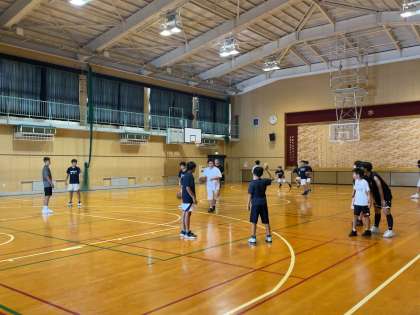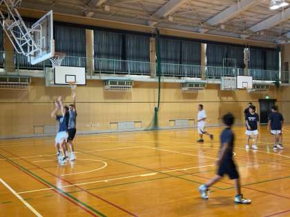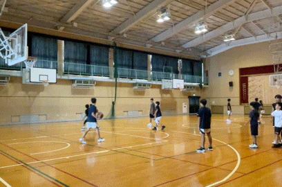ゴール下、見方からパスをもらった後の動きを確認しながら、シュートをしていました。