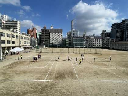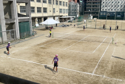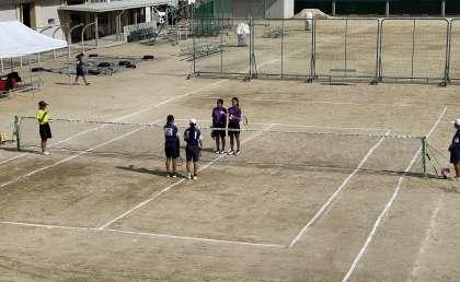 8月22日のソフトテニス部は本校で練習試合を行っています。