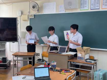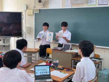 大阪府立大阪ビジネスフロンティア高等学校の授業では、マーケティングについて学習しました。その中で、飲み物の新商品企画と販売促進のプレゼンを行いました。