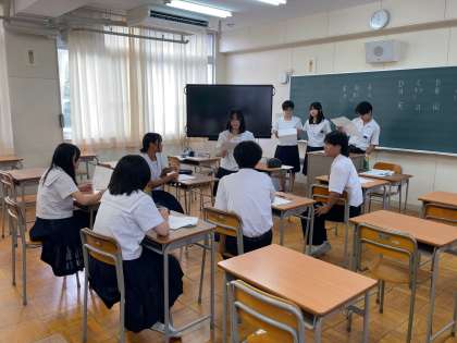 大阪薫英女学院高等学校の授業では、討論ゲームを体験しました。