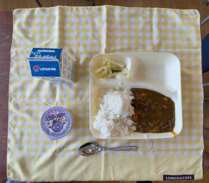 ビーフカレーライスは子どもたちに大人気です。2年生の子どもたちもたくさんおかわりし、おいしそうに食べていました。