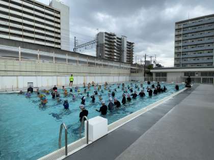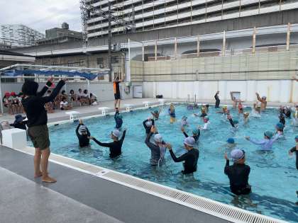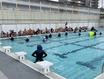 8年生は3・4年生がいつもやっている、パプリカの曲に合わせた準備運動をいっしょにやり、その後、けのびの練習などを3・4年生のみなさんをサポートをしていました。3・4年生の良い先輩として、一生懸命頑張ってくれました。