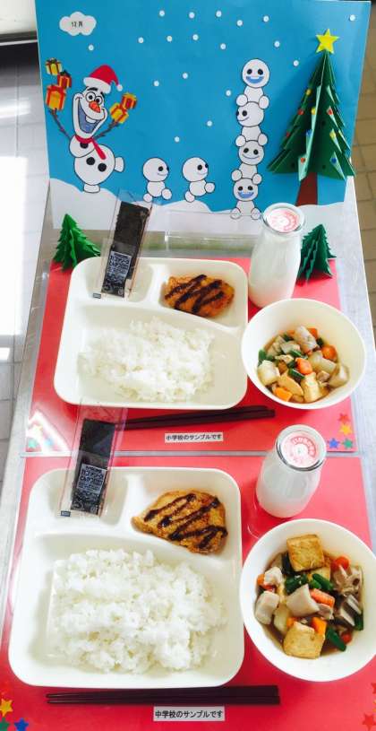 マグロのフライは給食室で一つずつ衣をつけて揚げています。衣には卵を使っていないので、卵アレルギーの子どもたちも安心して食べられる献立です。