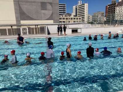 今週初めに行われた小学生と中学生の合同プールの様子はHPでお知らせいたしました。