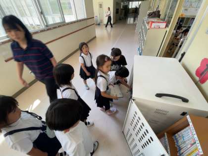 子どもたちは、充電保管庫から丁寧に学習者用端末を取り出し、両手でしっかりと持って自分の席まで戻りました。