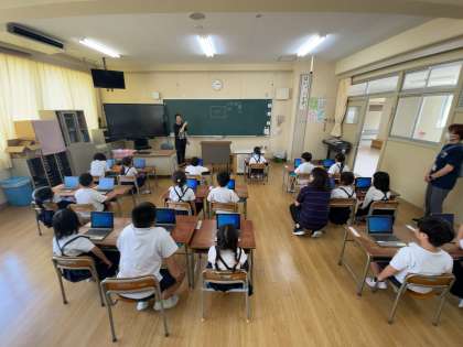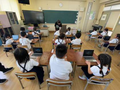 その後、ユーザIDとパスワードを入力し、無事にログインをすることができました。初めて学校でパソコンを触りましたが、子どもたちは上手に操作をすることができていました。