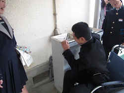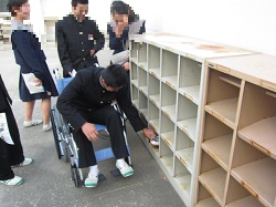 7年生がアイマスク・車いす体験を行いました。車いすに乗りながらだと靴が入れにくかったり、見えない中で教室を歩くことが怖かったりするなど、不自由さを体験することができました。この不自由さを解消するには声掛けが大切です。思いやりを持って、コミュニケーションをとることがどれだけ大切か、生徒一人ひとりが真剣に考えることができました。