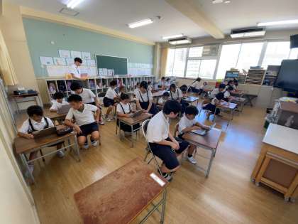 1年生の子どもたちも学習者用端末にスムーズにログインできるようになっています。子どもたちのICT活用スキルの向上は目覚ましいものがあります。