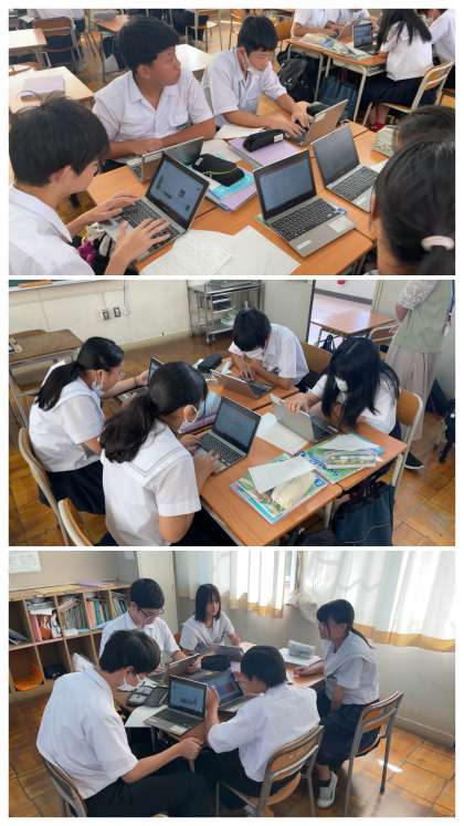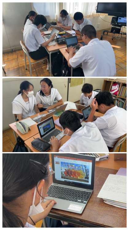 9月12日の4時間目は、「夢の旅行」を企画をテーマに、学習者用端末を使ってグループごとに資料を作成しました。