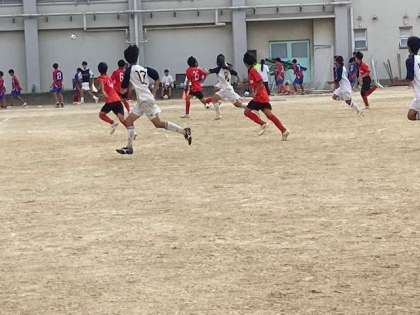 難波中・梅南中と合同チームで出場した本校サッカー部でしたが、残念ながら惜敗してしまいました。