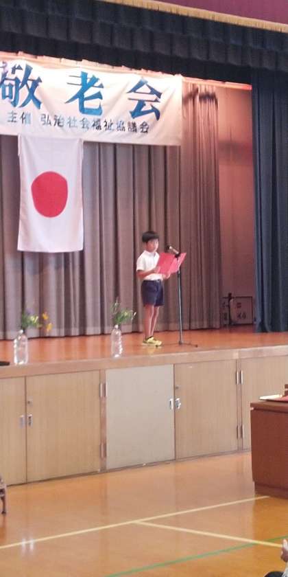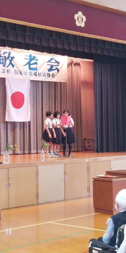 弘治敬老会に本校代表児童5名が出席し、作文を披露しました。地域の皆さまに感謝の言葉と、これからも健康で元気に過ごしてほしいことを発表することができました。とても上手に発表し、よく頑張ることができました。