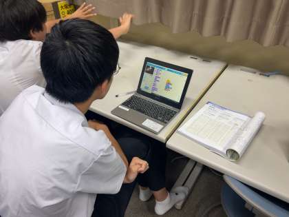 技術の授業では、プログラミングが必修となっております。今日は、Scratchというプログラミング言語を使って、ゲームを作成しました。