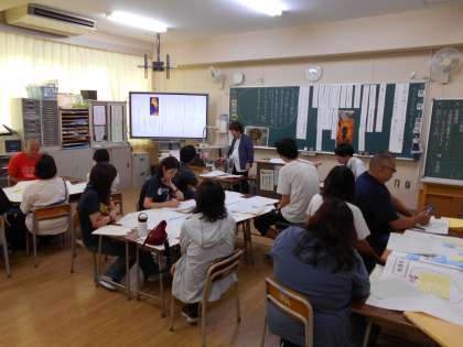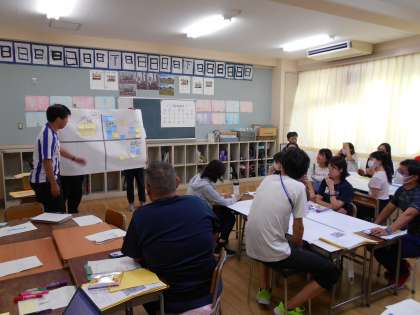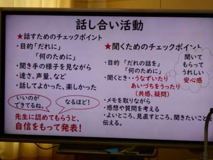 教員の研修を行いました。今日の研究授業を参観し、よかった点や改善点を話し合いました。