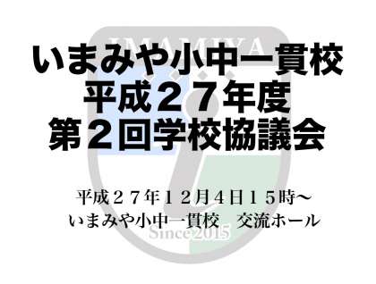 本サイトにおけるすべての著作権はいまみや小中一貫校にあります。すべての画像、資料などのデータの無断使用を禁止します。また、このWebページにリンクをはる場合は、必ずご連絡をください。