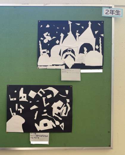 2年生は「切り絵」で思い思いの世界を表現しました。