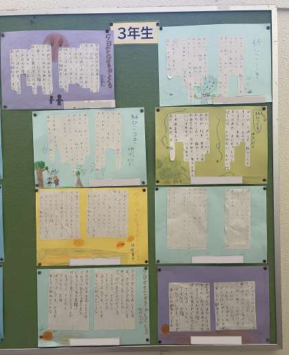 3年生は、詩を書き写し、その詩にあった背景を作成しました。