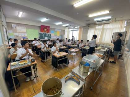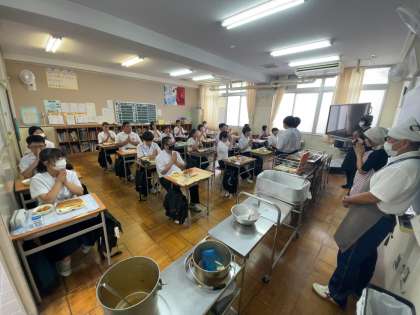 7年生の子どもたちはどのメニューもおいしそうに食べていました。特に、あまい大学いもが人気でたくさんおかわりしていました。