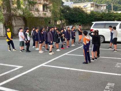 ラジオ体操とゲームでしっかりと身体を動かしました。
