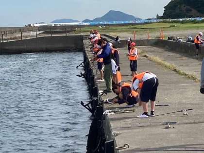 魚釣り体験が始まりました。さて、何匹釣れるでしょうか?