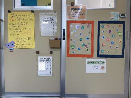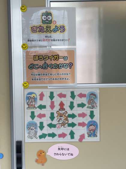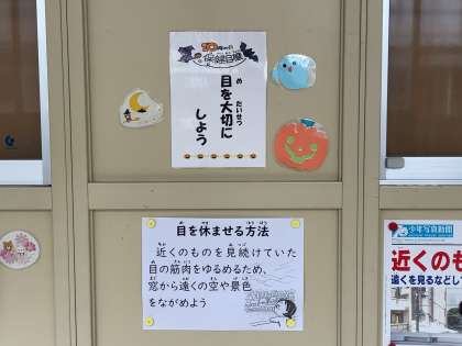 目を休ませることについてと、目に運動をさせるための掲示物を掲示しています。