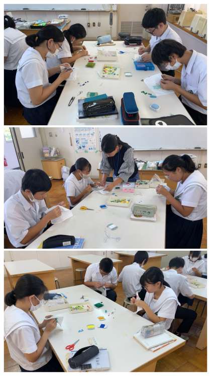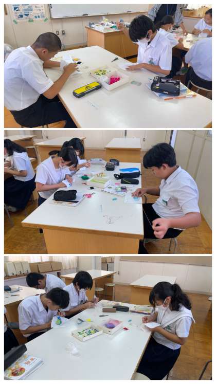いままでの作品づくりを通してボタン付けをしてきました。本日は、その成果を15分で発揮しました。子どもたちは、集中してボタンづけをがんばっていました。