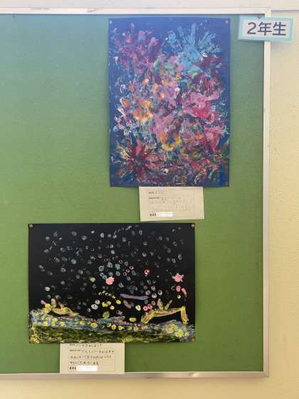 「とろとろえのぐ」を使って、指や手で描いた作品を掲示しました。