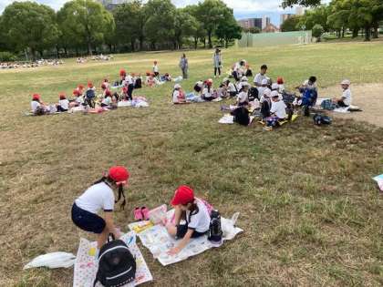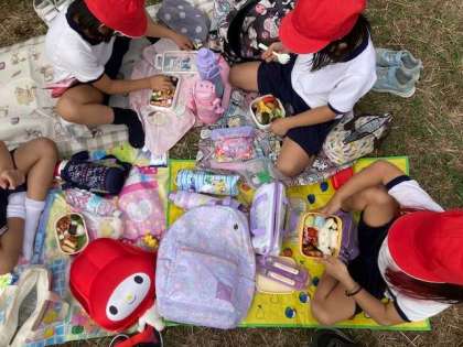 レジャーシートをひいて、仲の良いお友達と一緒にお弁当を食べました。色とりどりの可愛いお弁当の花が咲いていました。