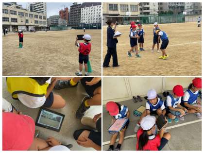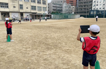 また、学習者用端末で走っている姿を撮影し、素早い腕振りになっているかの確認しました。