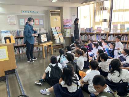 2年生は、西成図書館へ社会見学に行きました。図書館では職員の方に本の読み聞かせをしていただいたり、子どもたちの質問に答えていただいたりしました。子どもたちは熱心に話を聞き、西成図書館には6万5千冊の本があることや、一日に平均540人ぐらいの来館者があることなど、教えていただきました。