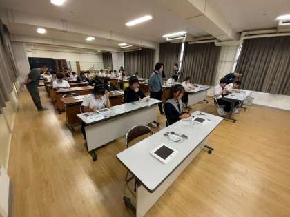 ご覧のように、紙で回答するものもあれば、タブレットにヘッドセットを付けてスピーキングを録音する方式もありました。