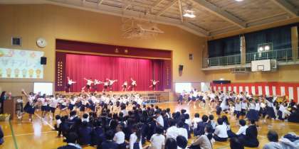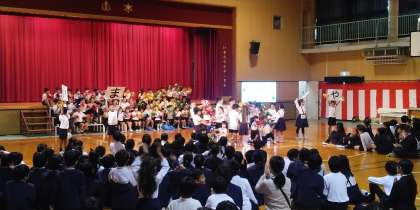 1、2年生は最後に「サチアレ」を踊りました。手首にキラキラのリボンをつけてとてもかわいく踊ることができました。最後に10周年の「10」の数字を作っていました。