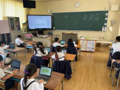 プリントが早く終わった子どもたちは、学習者用端末でデジタルドリルをして、自主的に学習していました。