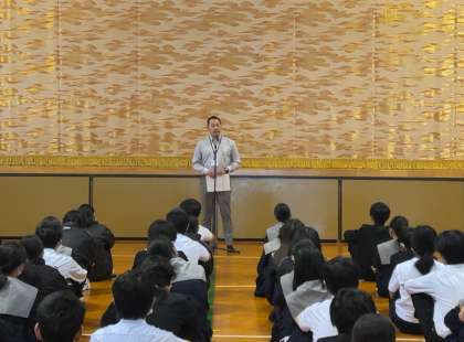進路を決めるためにしっかりと自分の考えを持ってほしいというお話でした。本日から、9年生は進路懇談が始まります。そこでは、私立や公立特別選抜、就職について相談します。自分の進路ですから、他人任せにせず自分の意見をもって、懇談に臨んでほしいです。しかし、わからないことや疑問に思ったことはそのままにせず、先生方やおうちの方と相談や質問するようにしてくださいとの内容でした。