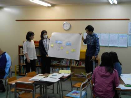 放課後、研究授業の討議会を行いました。5時間目のすまいる学級の「大豆博士になろう」の学習を振り返り、授業の良かった点や改善点について話し合いました。